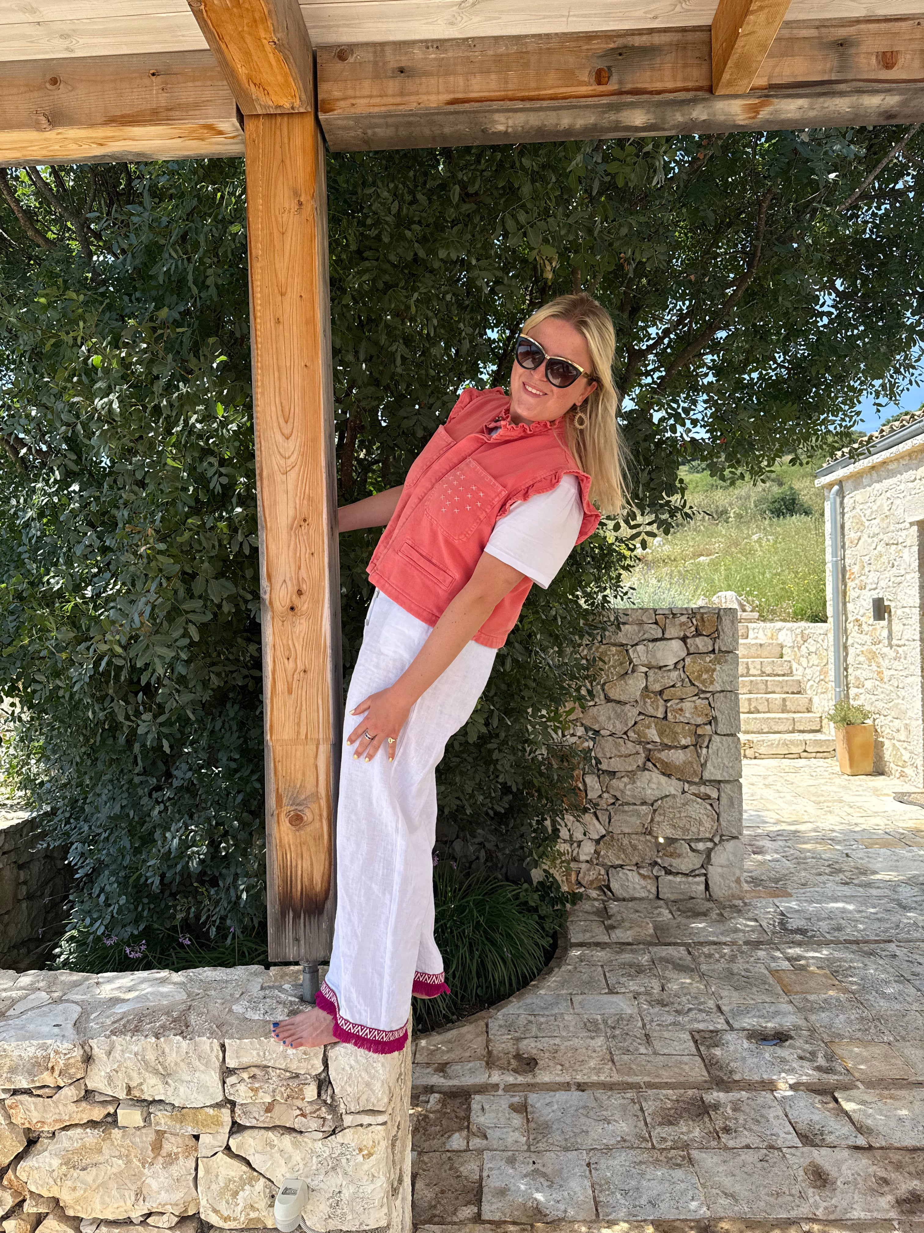 Featuring detachable coloured fringing to allow you to customise your linen trousers depending on your outfit, occasion and mood. A trouser to suit all.